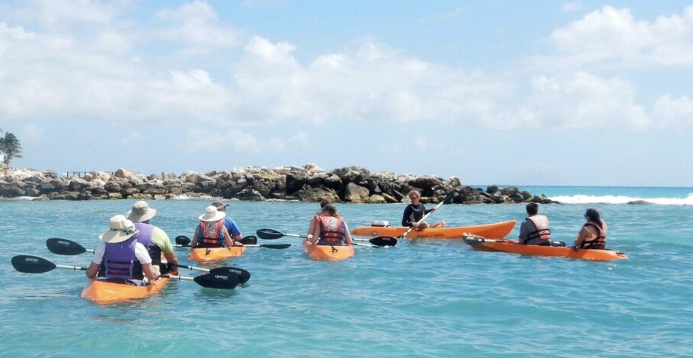 With our guide you paddle to great spots along reefs, rocks & an old drydock. Feed the fish & paddle on the calm waters of Simpson Bay & the lagoon. Our guide is very knowledgable on marine life, so ask away!
